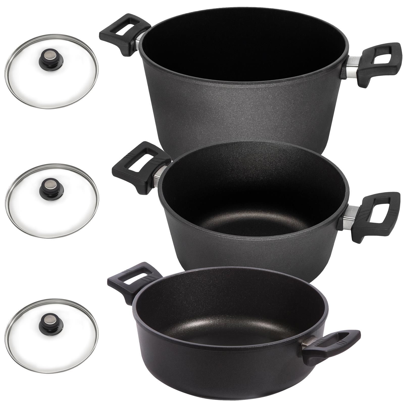 Eurolux Topfset Induktion Aluguss beschichtet 6-tlg. Bratentopf Kochtopf Deckel