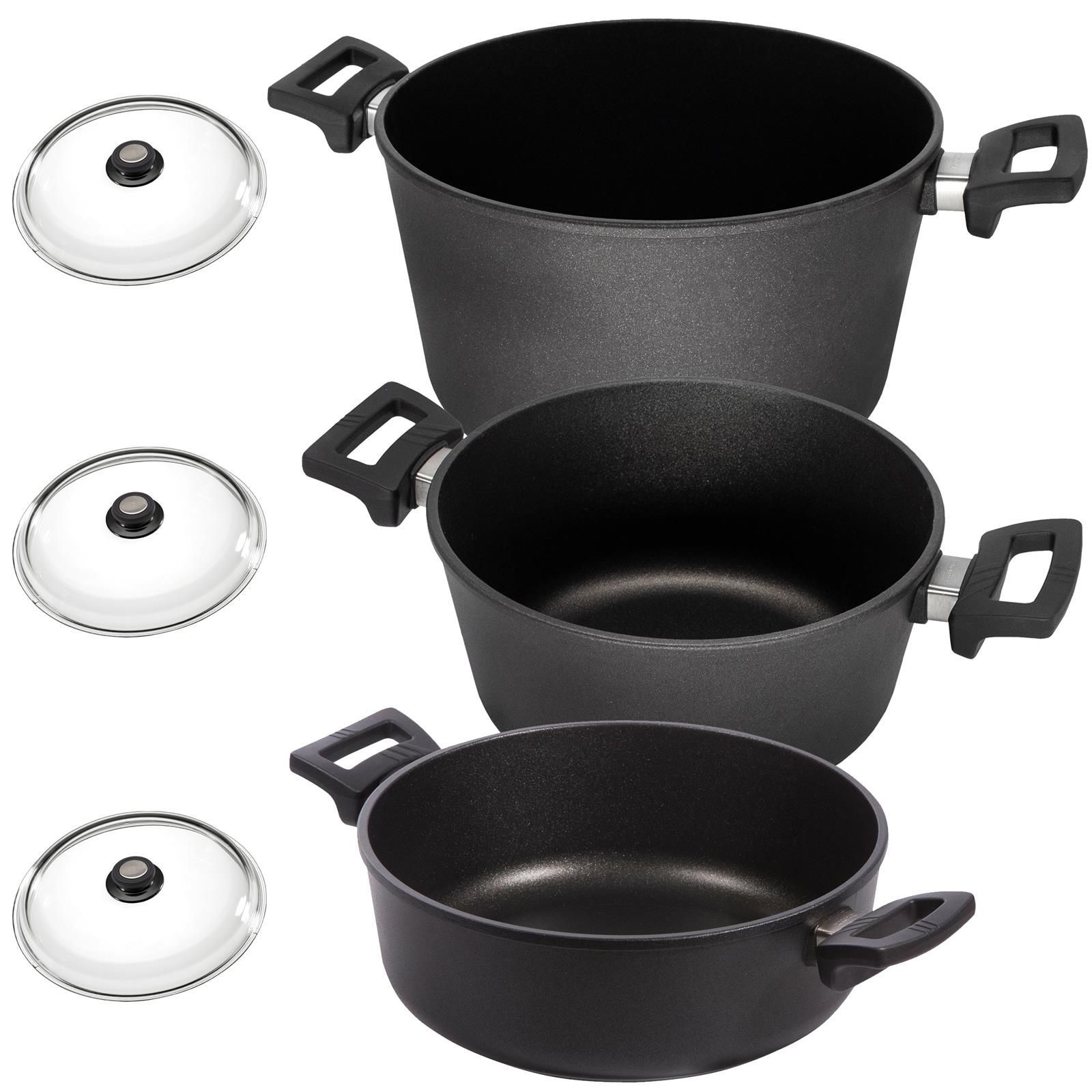 Eurolux Topfset Induktion Aluguss beschichtet 6-tlg. Kochtopf Bratentopf Deckel
