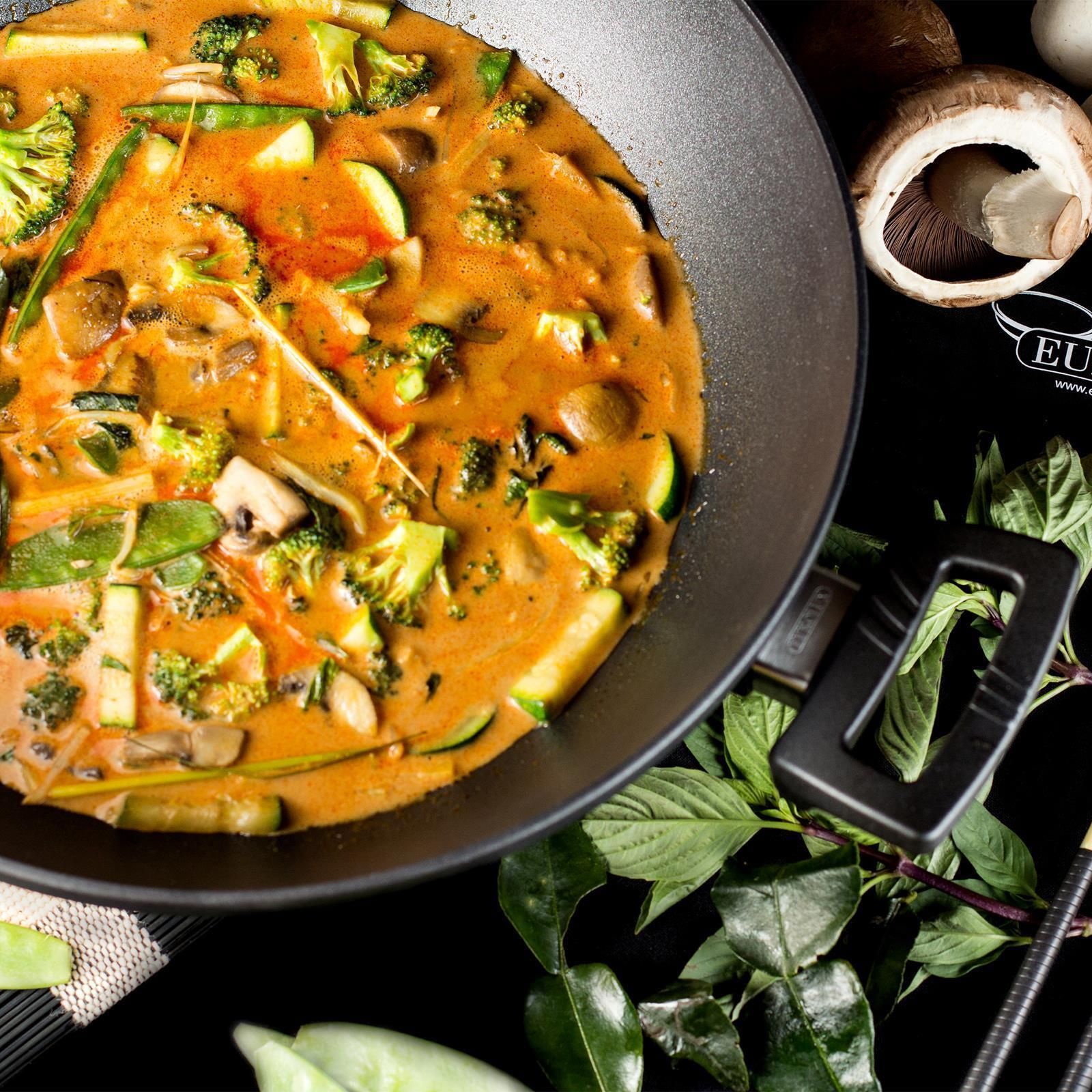 Eurolux Wok Pfanne beschichtet Guss 32 cm Induktion Aluguss mit Griffe & Deckel
