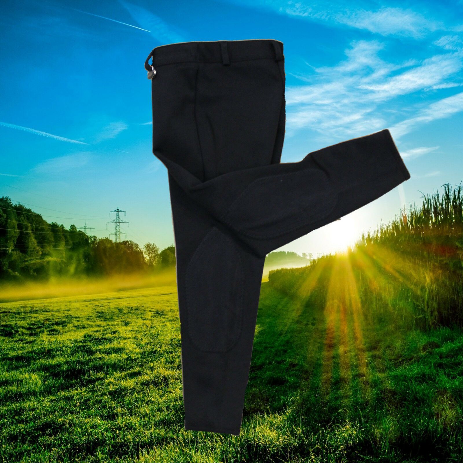Kinder Reithose Kandy in Schwarz aus der Collection von Euroridng Normal 0 21 false false false DE X-NONE X-NONE · Kniebesatz Reithose · Bequeme Passform · Gute Bewegungsfreiheit · Elastischer Bund mit Gürtelschlaufen · Beinabschluss mit Klettverschluss · Tr