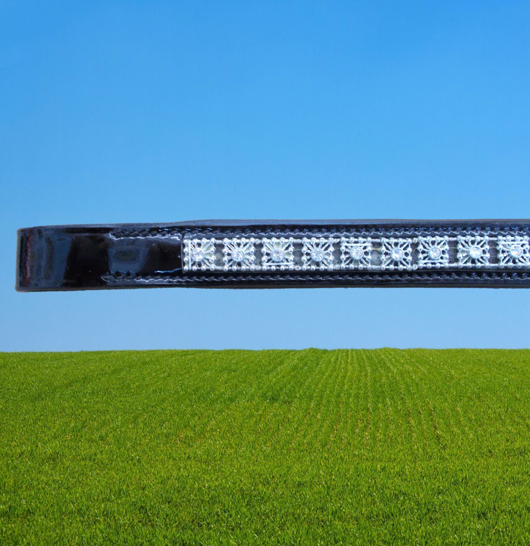 Euroriding Stirnband LACK Euro-Club, Stirnriemen, Strass, Lackleder, schwarz