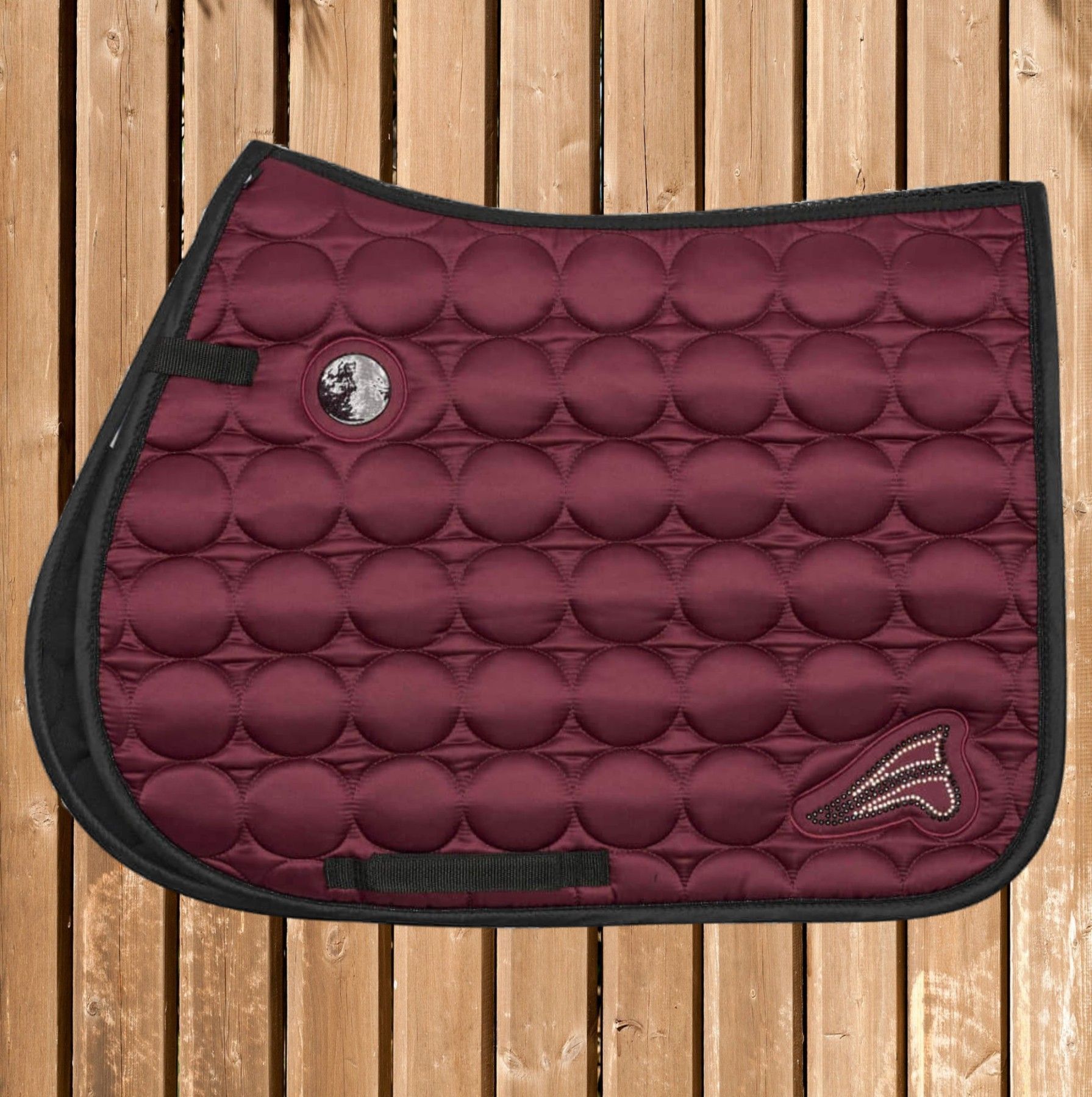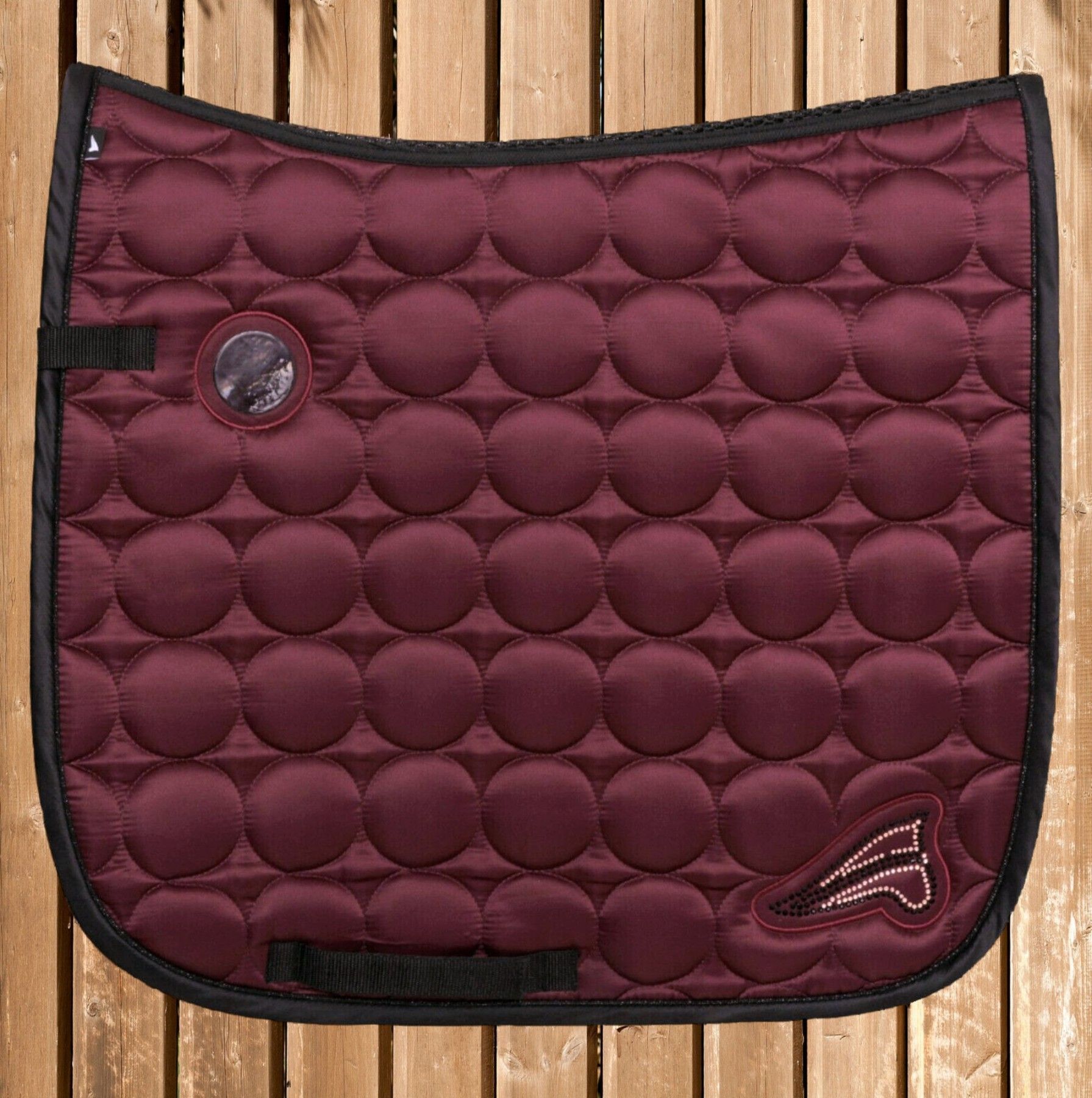 EuroStar Schabracke Diamond, glänzende Satteldecke mit Strass, dark red cheeks