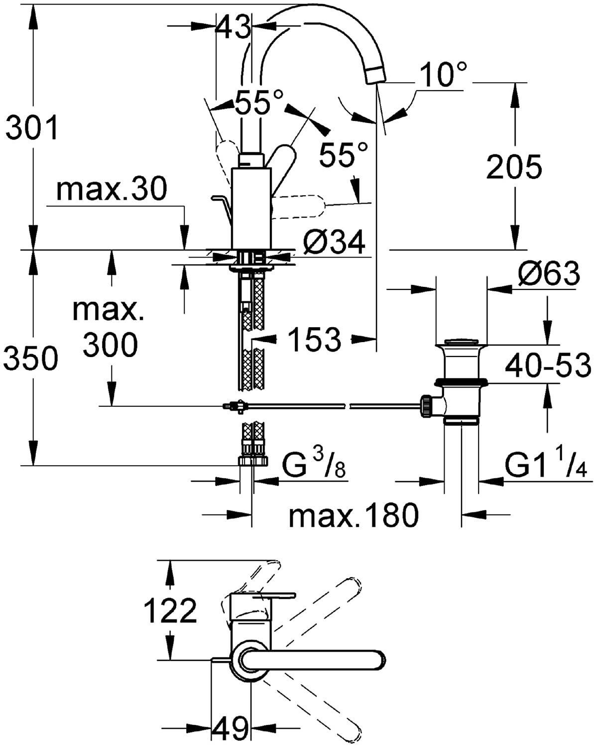 Grohe Eurostyle Cosmopolitan Einh. WT 1/2" Zugknopf hoher GROHE Eurostyle Cosmopolitan