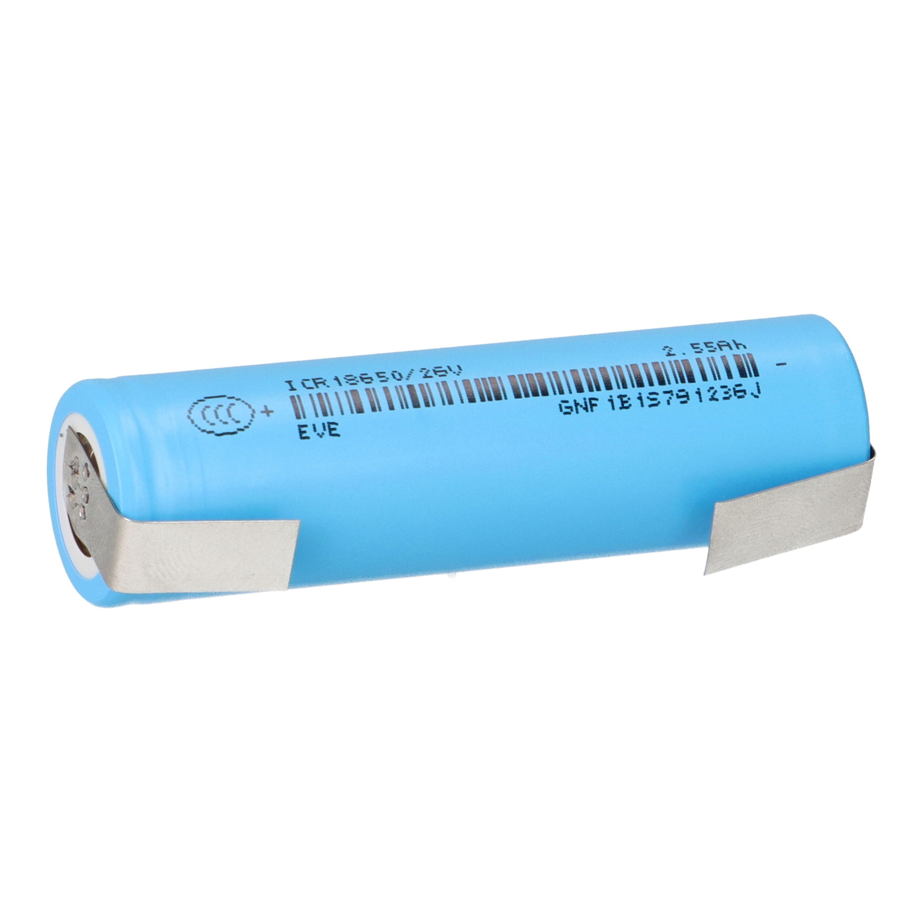 EVE ICR18650-26V 2550mAh 3,6V Li-Ion Entladestrom 7.65A U-Lötfahne