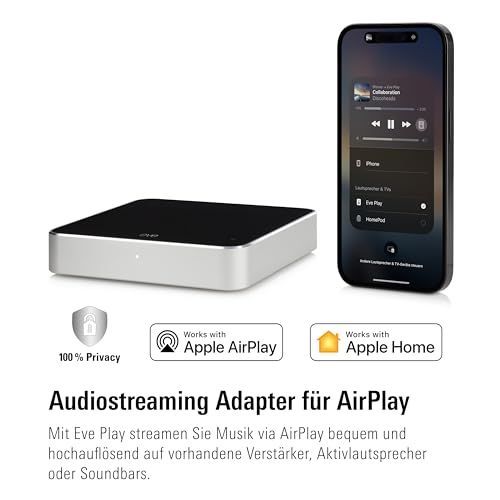 Musik mit AirPlay auf seinen Verstärker, Aktivlautsprecher oder Soundbars streamen und liebgewonnene Hi-Fi-Komponenten einfach smart machenSynchrone Multiroom-Wiedergabe: Dank des Audio-Sync von Eve Play spielt die Anlage ohne zeitverzögerte Töne simultan mit anderen AirPlay-Lautsprechern zusammenLe... Mehr