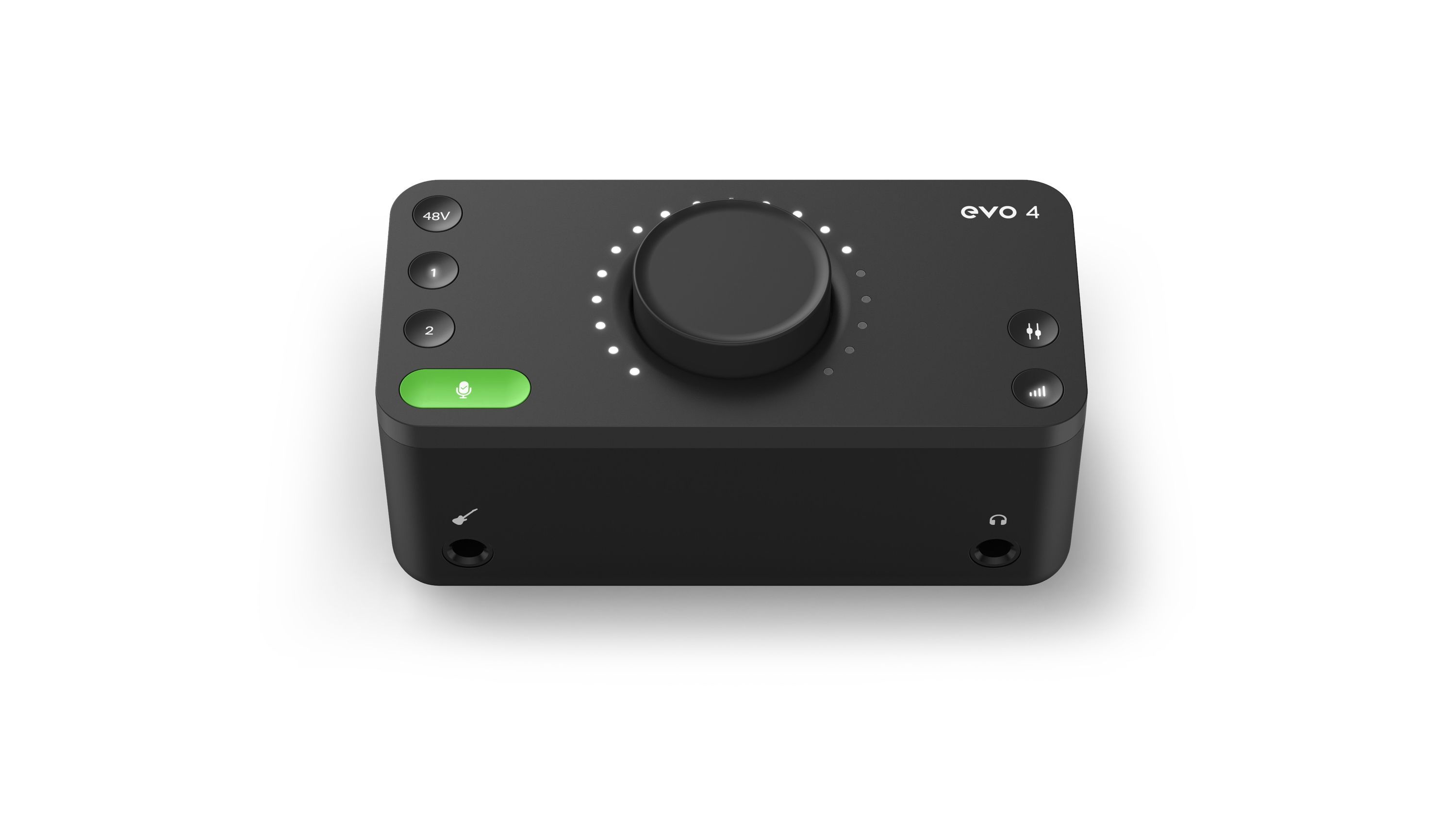 EVO by Audient EVO 4 2 in 2 out USB-Audiointerface Smartgain Smart Touchpoints Loopback Funktion High Speed USB 2.0 24bit 44,1?96kHz 113 dB Dynamikumfang AD DA AKM Kopfhörerausgang: 113dBA Dynamikumfang, 52mW @60Ohm 2 Mikrofon-Vorverstärker mit 58dB Gain, Verzerrung: <0,0015% THD+N 2 kombinierte