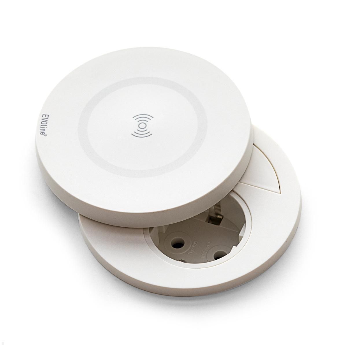 EVOline EVOline Circle80 Einbausteckdose USB A/C, Wireless Charger Deckel, weiß