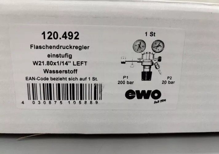ewo EWO 120.492, Flaschendruckregler, einstufig, für brennbare Gase, Wasserstoff, 20 bar