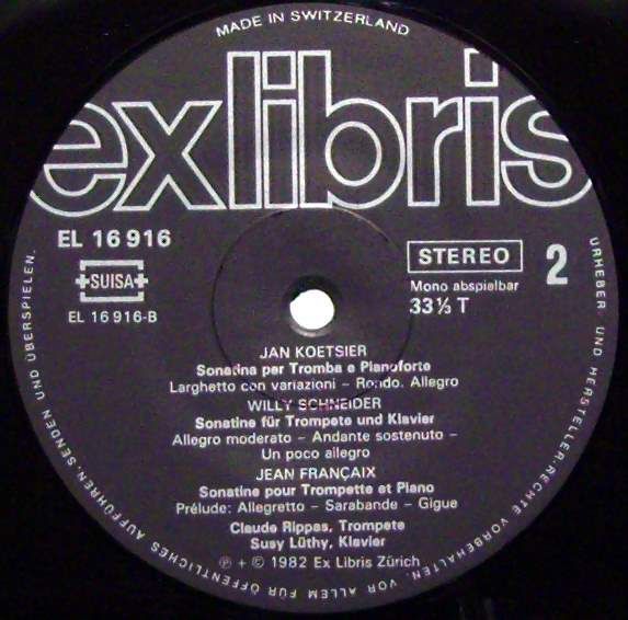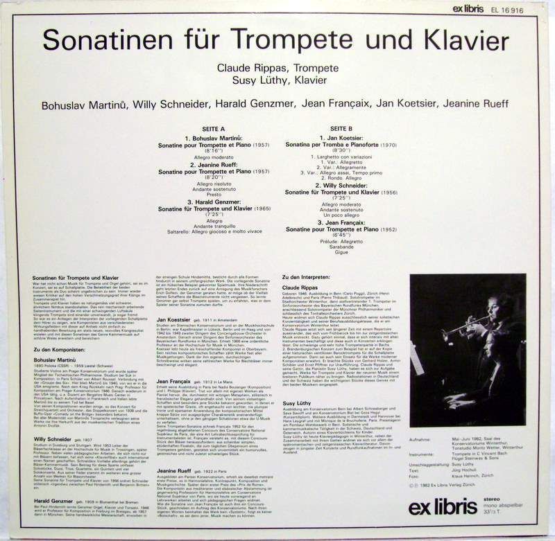 Condition Vinyl Near Mint (NM or M-) Condition Sleeve Very Good Plus (VG+) Tracks included: Sonatine Pour Trompette Et Piano (1957) Composed By : Bohuslav Martin? I 1. > Allegro Moderato Sonatine Pour Trompette Et Piano (1957) Composed By : Jeanine Rueff 2. > Allegro Risoluto 3. > Andante S