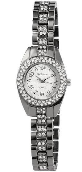 Excellanc 152172500036 Analog Edelstahl Damenuhr Steinchenbesatz