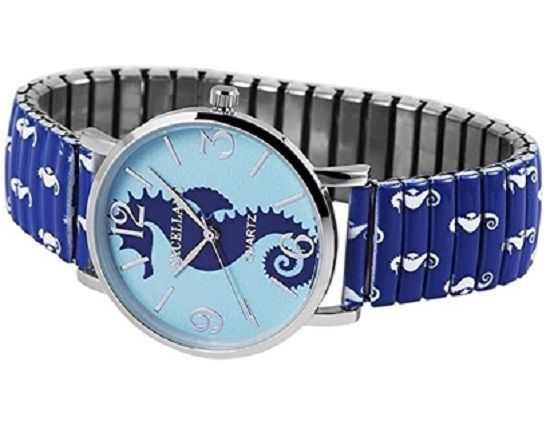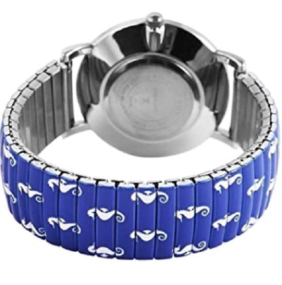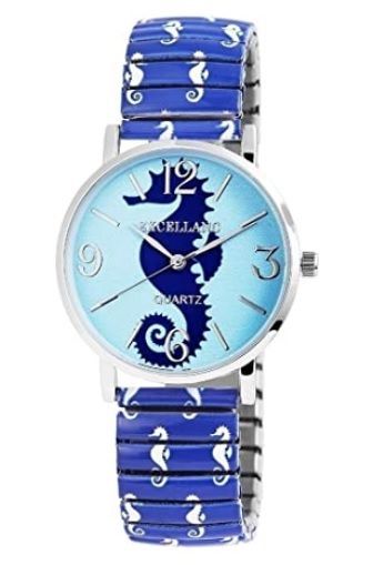 Excellanc 1700006-003 Damenuhr mit Metallzugband blau/weiß Seepferdchen