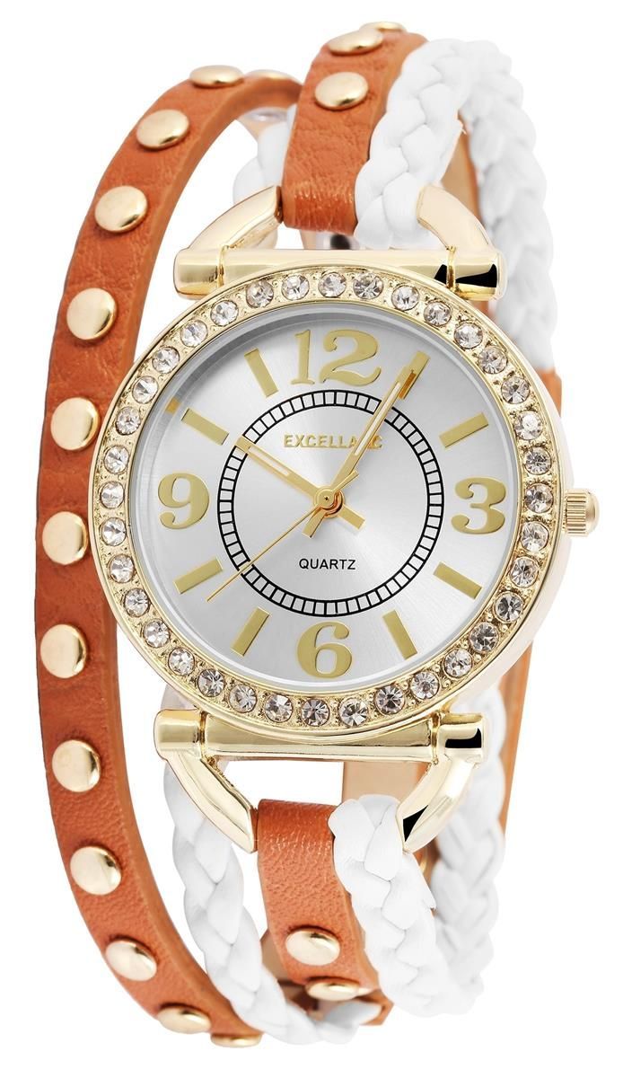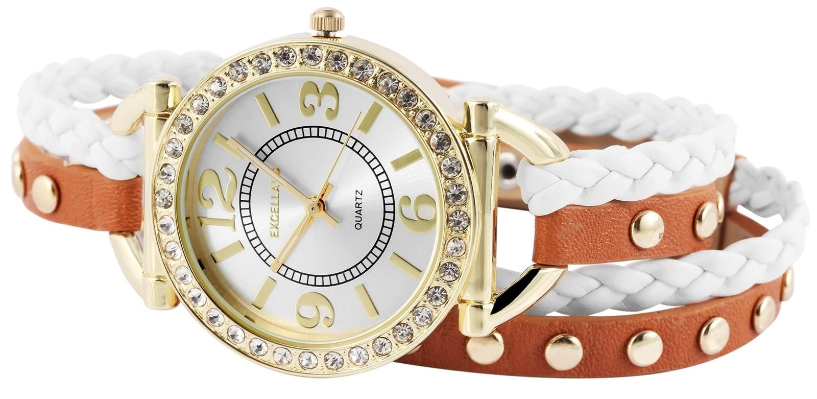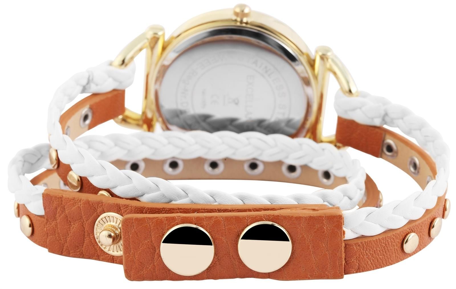 Excellanc 1900179-004 Analog Damenuhr mit Kunstleder-Wickelband braun