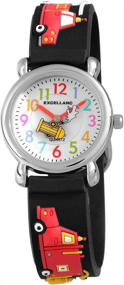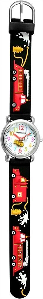Excellanc 4500015-001 Kinderuhr "Feuerwehrauto" - schwarz-rot - Silikonband