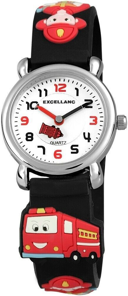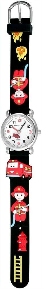 Excellanc 4500017-001 Kinderuhr "Feuerwehr" - schwarzes Silikonband - Analog