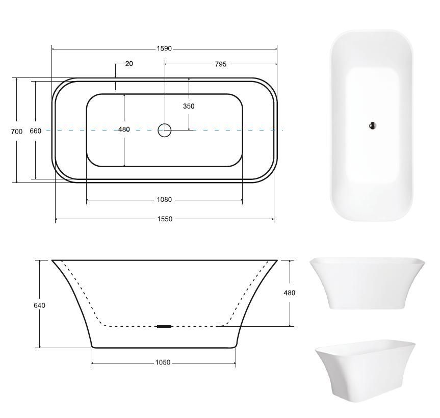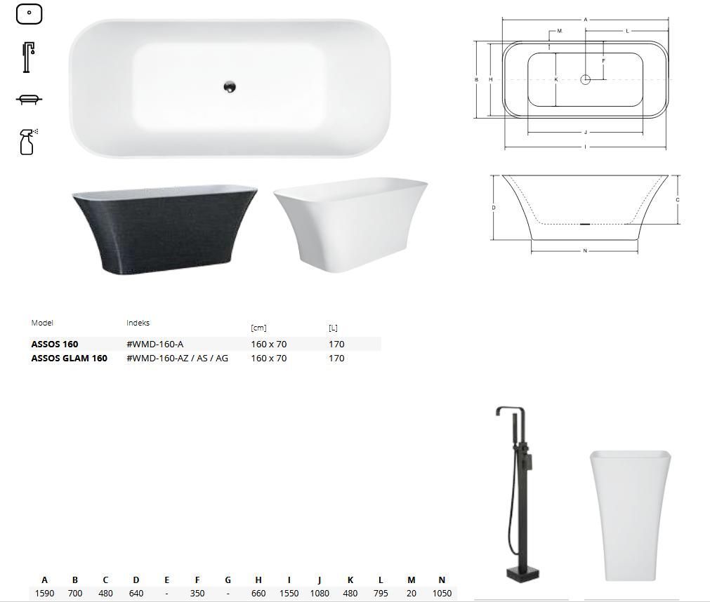 Exclusive freistehende Badewanne Acrylwanne Wanne Bad 160x70 Hochwertige Design