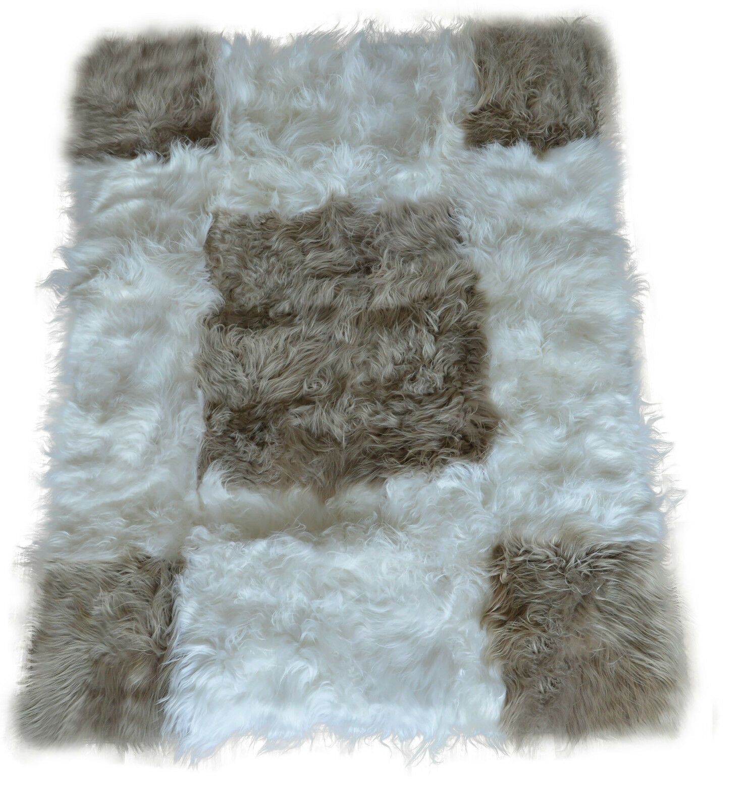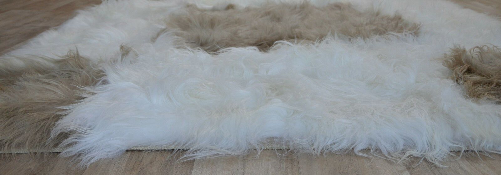 Exklusiv Island Lammfell Teppich weiß beige 200cm x 160cm Fellteppich lambskin