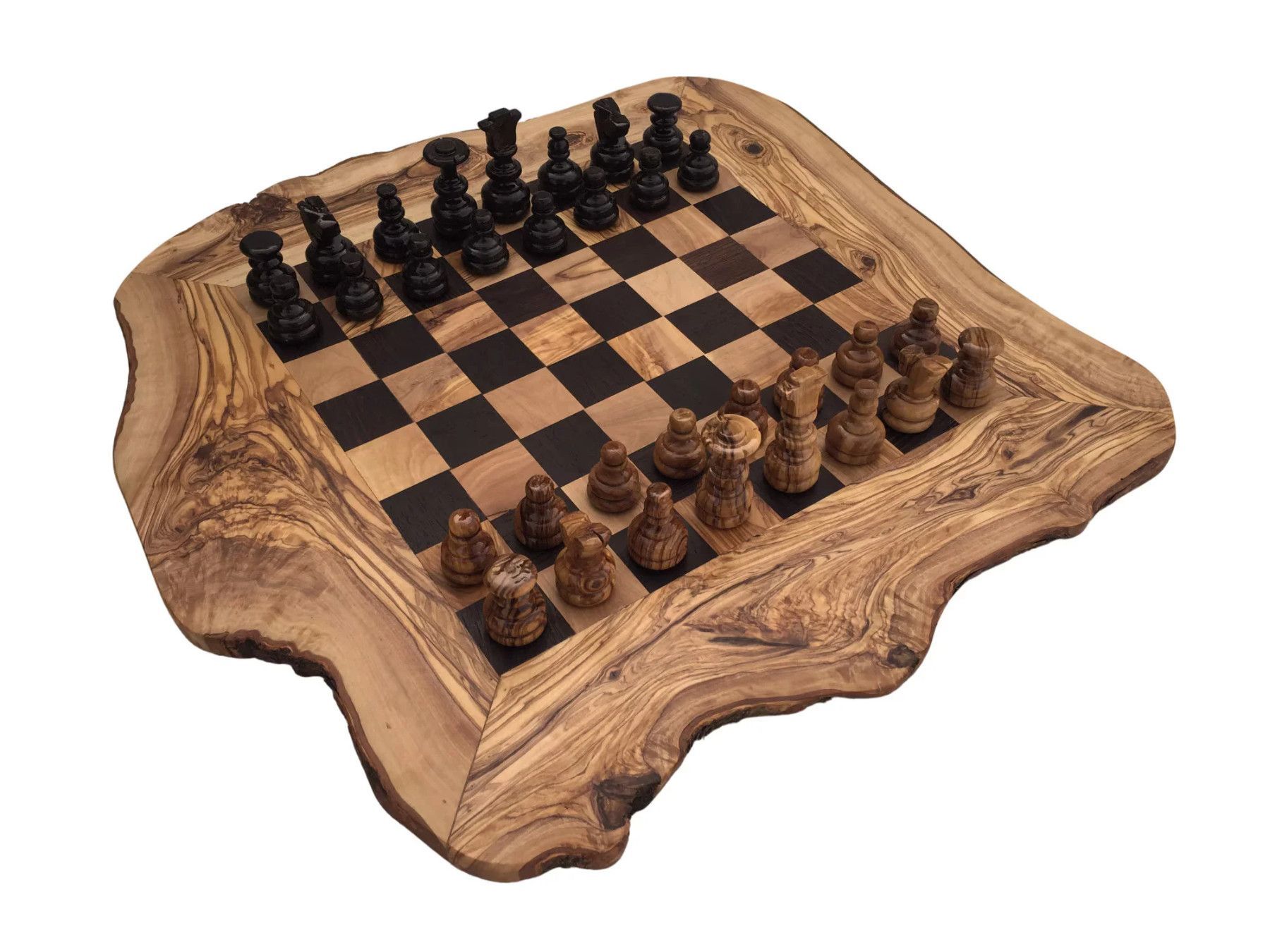 Exklusive Schachspiel rustikal, Schachbrett Gr. wählbar M/ L/ XL inkl. Schachfiguren