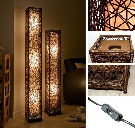 Exklusive Stehlampe Stehleuchte Rattanlampe Rattanleuchte mit Stoffschirm und Geflech