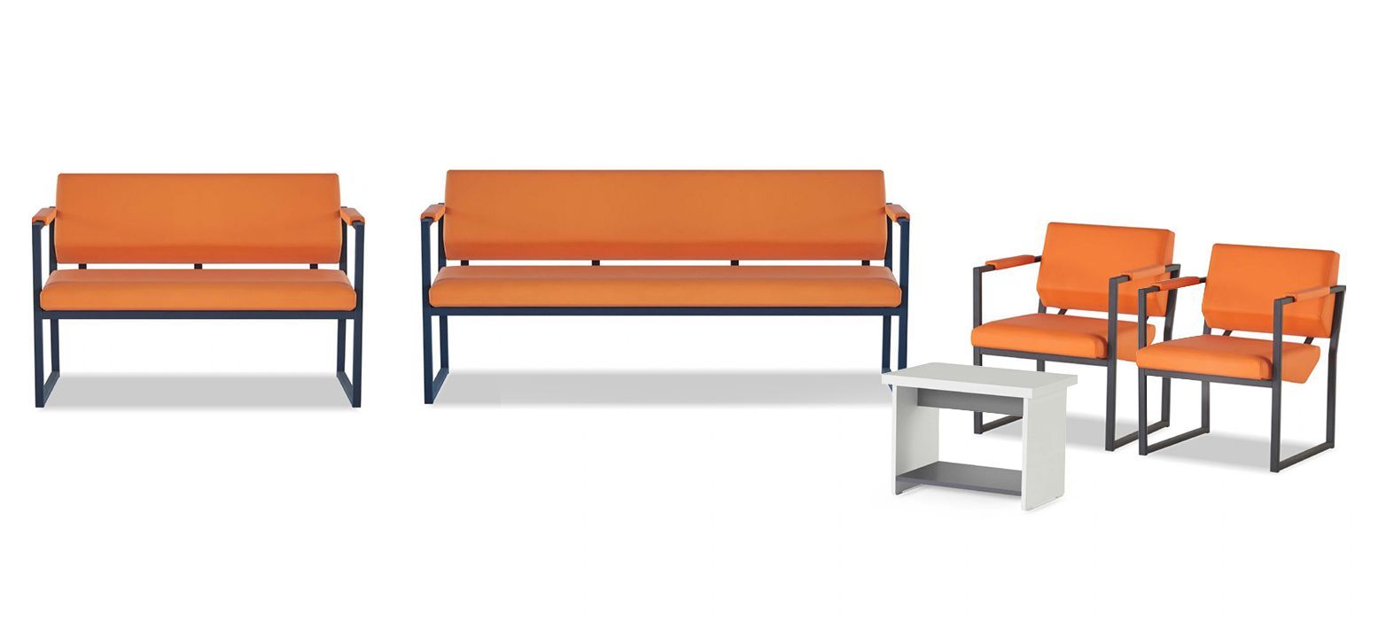 Exklusive Wartezimmer Sitzmöbel Edler Kaffeetisch Ledersessel 3-Sitzer