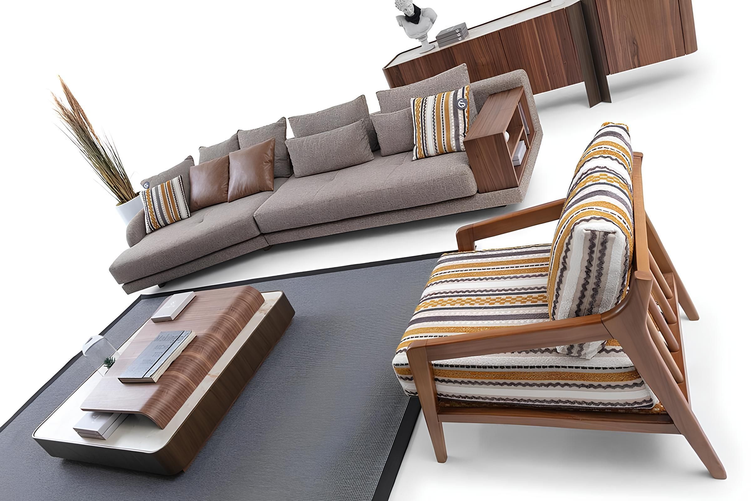 Exklusive Wohnzimmer Couchgarnitur Stoffsofa Holz Couchtisch Sideboard