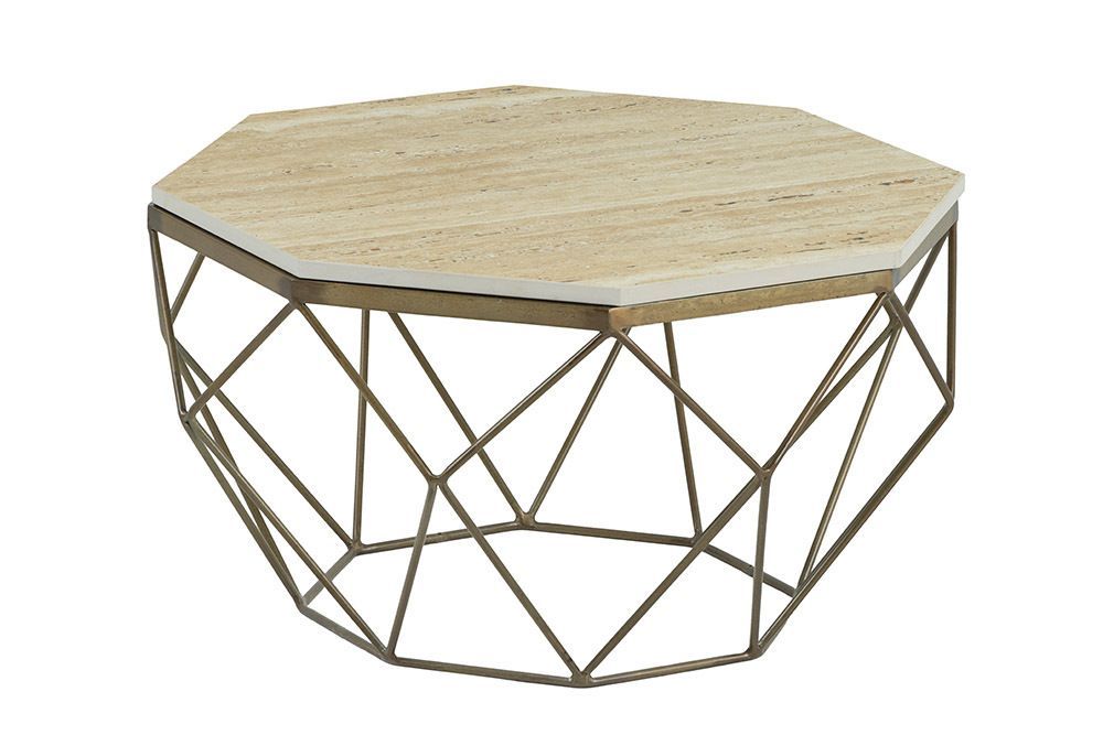 Exklusiver Couchtisch BIJOUX ca.70cm beige Travertin Handarbeit messing Eisengestell