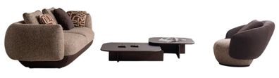Braune Textilgarnitur Designer 3-Sitzer Polstersessel Couchtisch