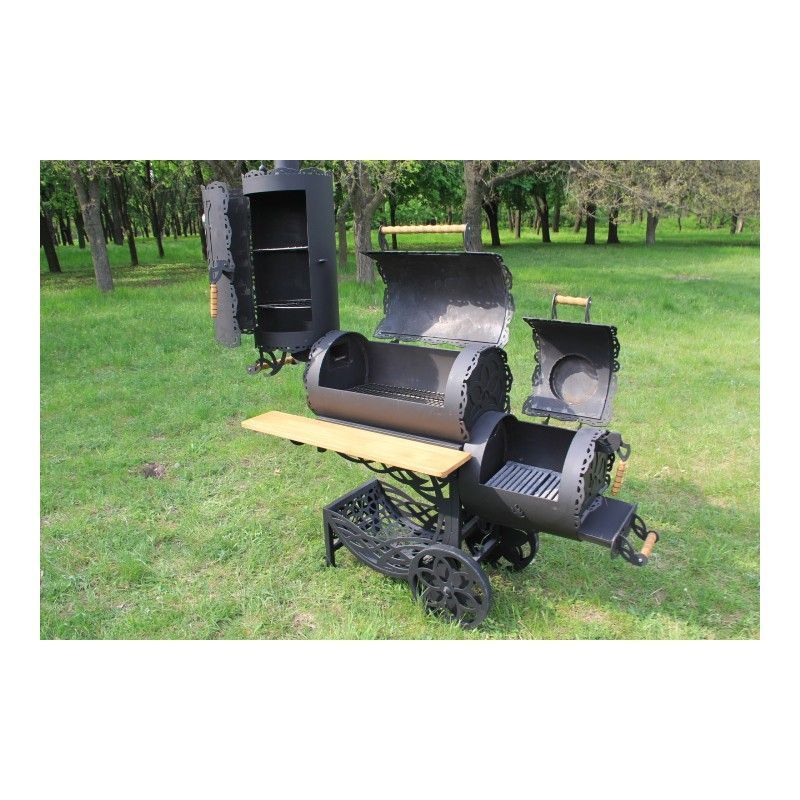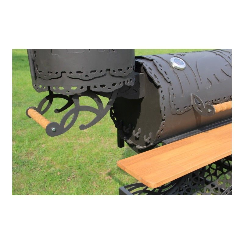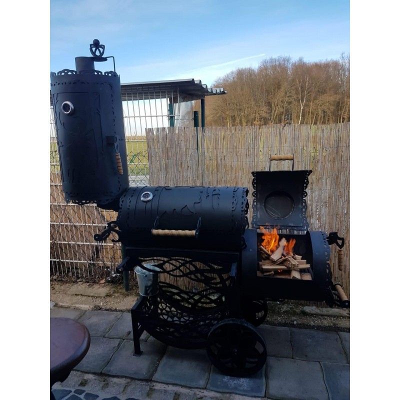 Smoker Grill mit Räucherofen aus Stahl Dieser exklusive Smoker Grill mit integriertem Räucherofen ist das ultimative Highlight für jeden Grillmeister. Gefertigt aus geschmiedetem, hitzebeständigem Stahl , überzeugt dieser Grill durch Stabilität, Langlebigkeit und ein außergewöhnliches Design. Die Ko