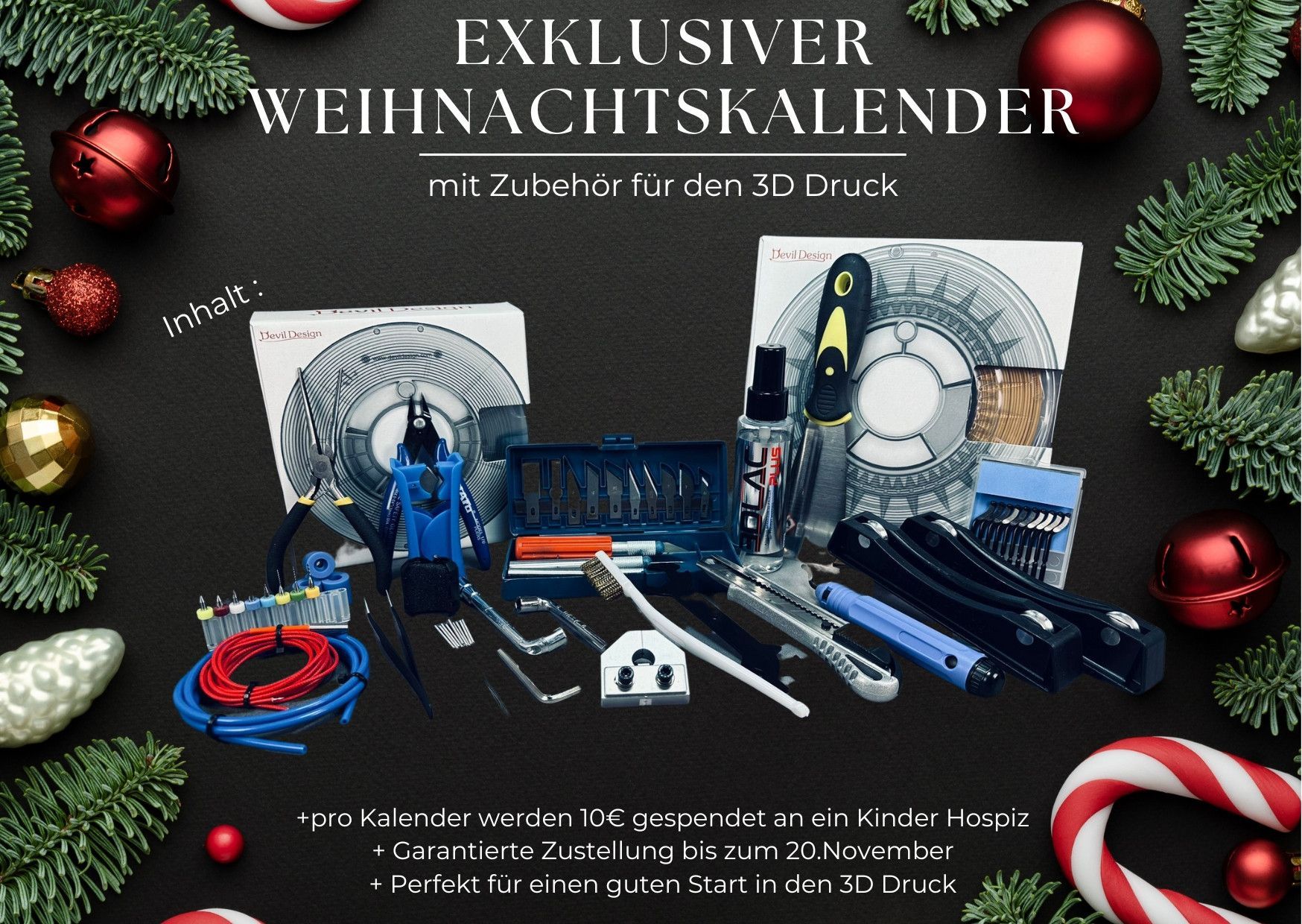 Exklusiver Weihnachtskalender / Adventskalender mit Zubehör für den 3D Druck