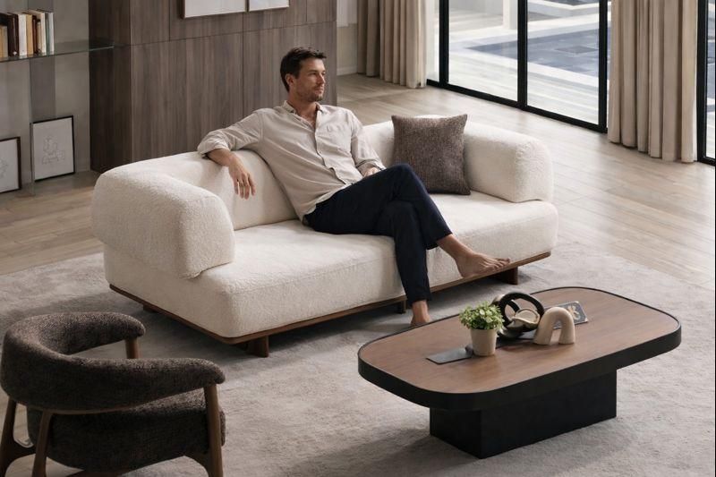 Moderner 3-Sitzer Wohnzimmer Beiges Polstersofa Stoffsofa Dreisitzer