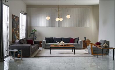 Graues Polstersofa Moderner Dreisitzer Wohnzimmer Textilsofa Luxus Neu