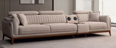Moderne 4-Sitzer Couch Beiges Polstersofa Musikboxen USB-Anschluß