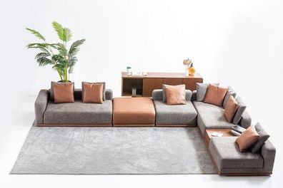 Modernes Graues Polstersofa Wohnzimmer Stoffsofa Designer L-Form Couch