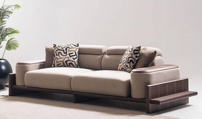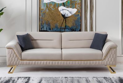 Exklusives Beiges Polstersofa Moderne Textilcouch Wohnzimmer 3-er
