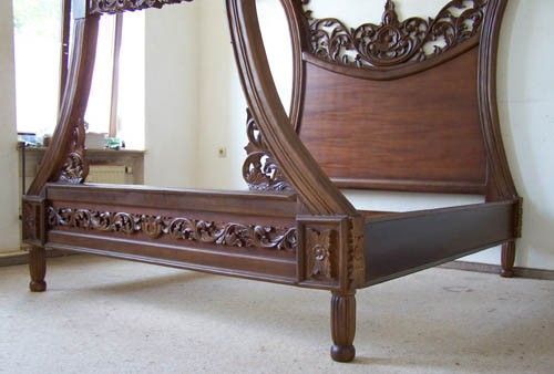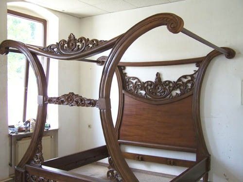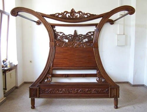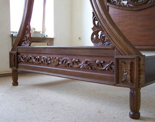 Dieses Bett ist was ganz besonderes !! Ein echter Hingucker !! Seine prachtvolle Formgebung, die aussergewöhnliche Gestaltung, sowie die wirkungsvollen Details ergeben ein Gesamtbild das Blicke auf sich zieht. Von Hand gefertigte Schnitzereien (Blüten- und Blattmotive) schmücken das höhst effektvoll