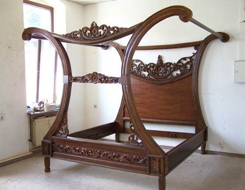 Exklusives Bett Bettgestell B180 x L200 Himmelbett Holz Nussbaumton Prunkbett