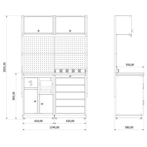 • Hängeschrank Grau Werkstatteinrichtung Werkbank Werkzeugschrank Lochwand