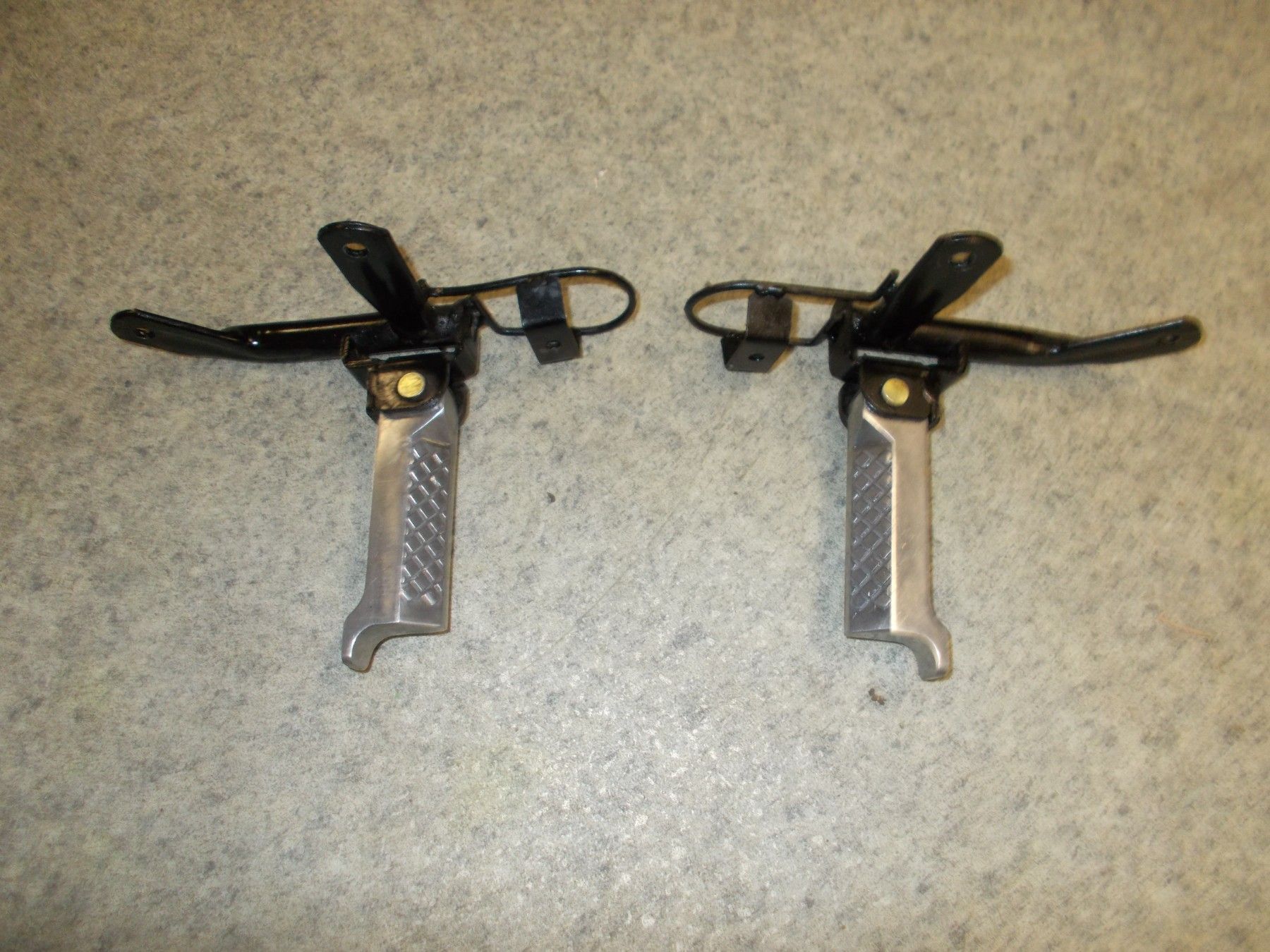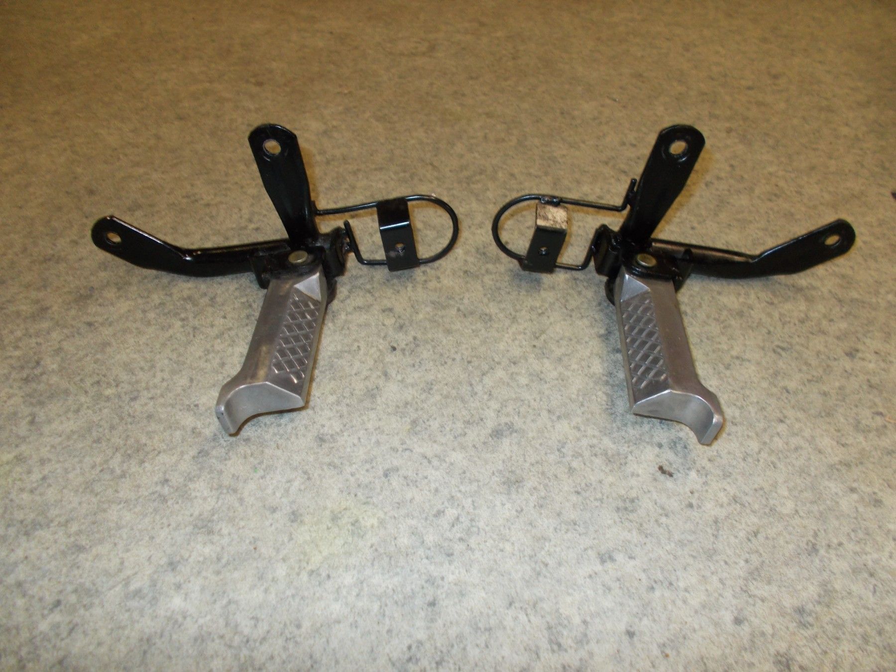 Gebrauchte Beifahrerfußrasten incl. Befestigungsplatten von einem Motorroller Explorer CF-Moto 125T Wallstreet. Artikel sind in Topzustand.