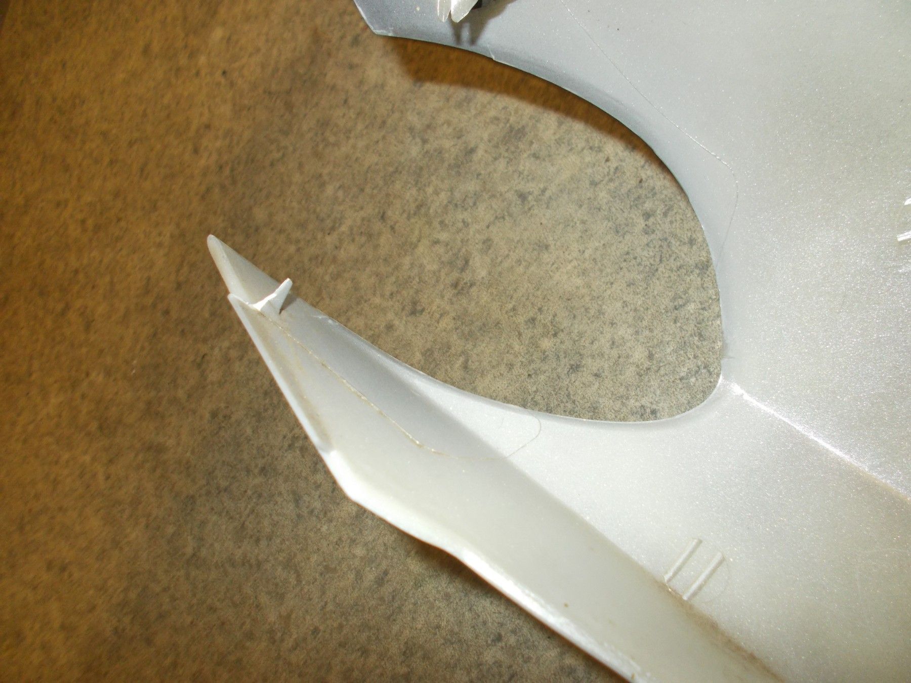 Die Verkleidung ist in gutem Zustand. Nur eine Befestigungsnase ist abgebrochen. Das Befestigen ist aber kein Problem.