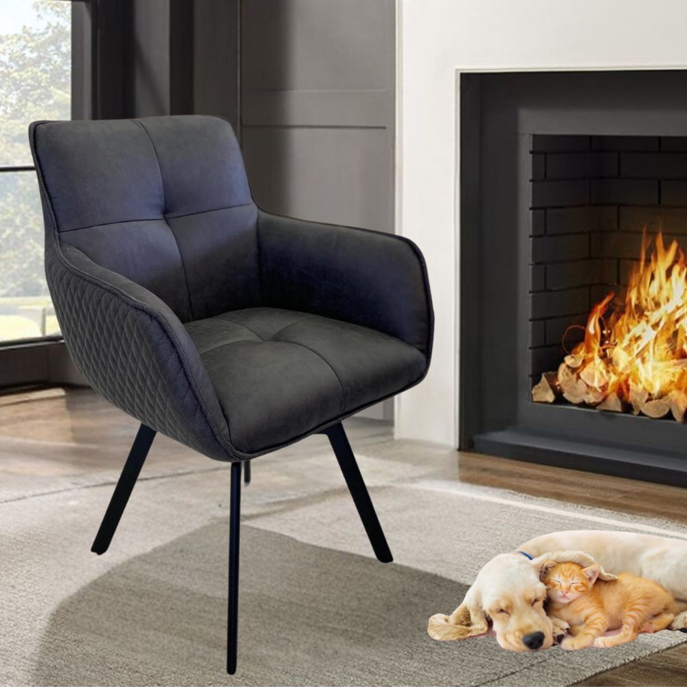 Exquisiter Drehstuhl 360° + Return Splendid antik-anthrazit Leder-Tex-Mix