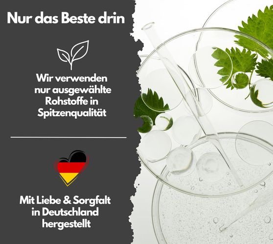 • Hinweise: Die empfohlene tägliche Verzehrmenge darf nicht überschritten werden. Nahrungsergänzungsmittel sind kein Ersatz für eine ausgewogene und abwechslungsreiche Ernährung und eine gesunde Lebensweise. Für Kinder nicht geeignet. Außerhalb der Reichweite kleiner Kinder, ungeöffnet kühl und trocken lagern.