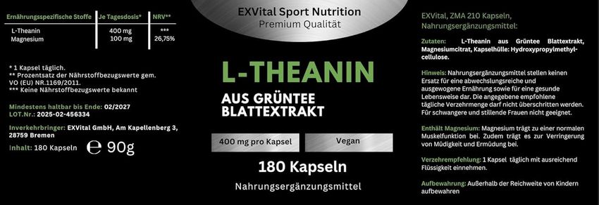 EXVital® L-Theanin Kapseln, 400mg aus Grüntee Blattextrakt