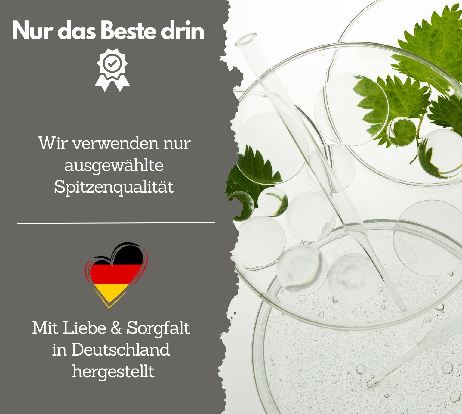• Hinweise: Nahrungsergänzungsmittel stellen keinen Ersatz für eine abwechslungsreiche und ausgewogene Ernährung sowie für eine gesunde Lebensweise dar. Die angegebene empfohlene tägliche Verzehrmenge darf nicht überschritten werden. Für schwangere und stillende Frauen nicht geeignet.