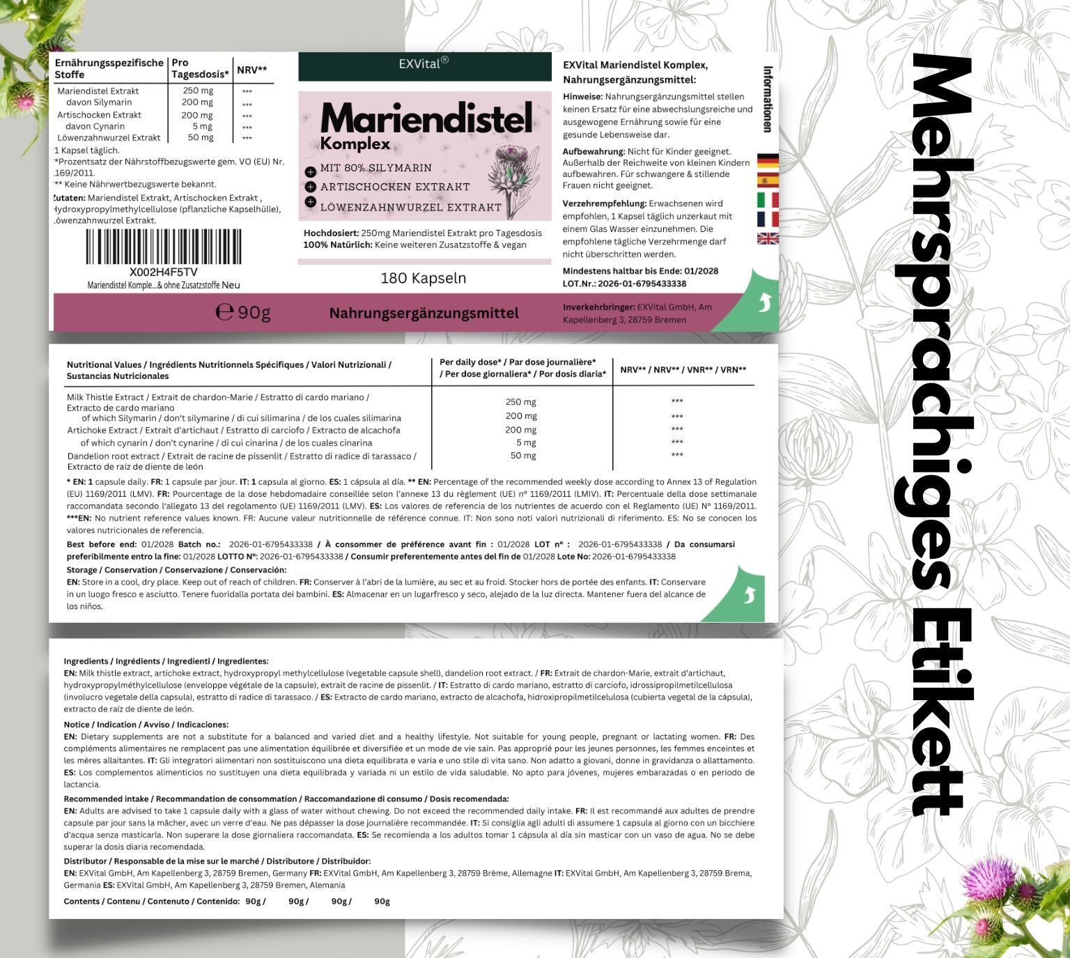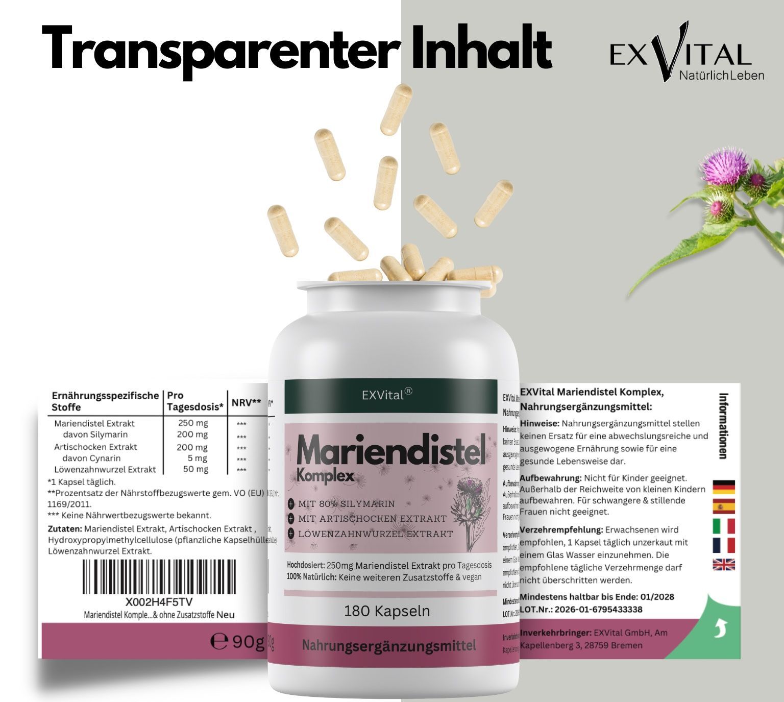 EXVital® Mariendistel Komplex mit Artischocke & Löwenzahn, hochdosiert & vegan