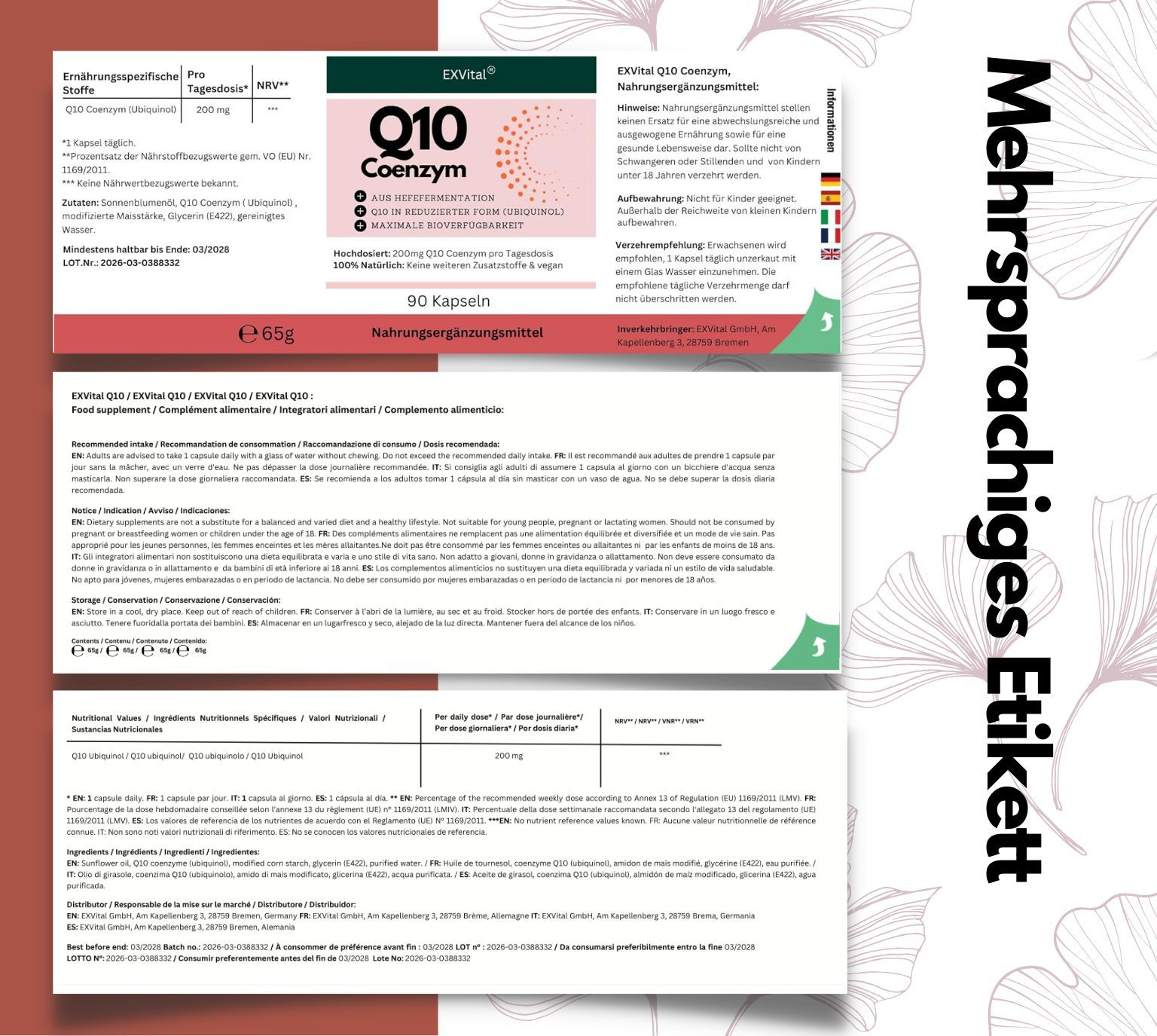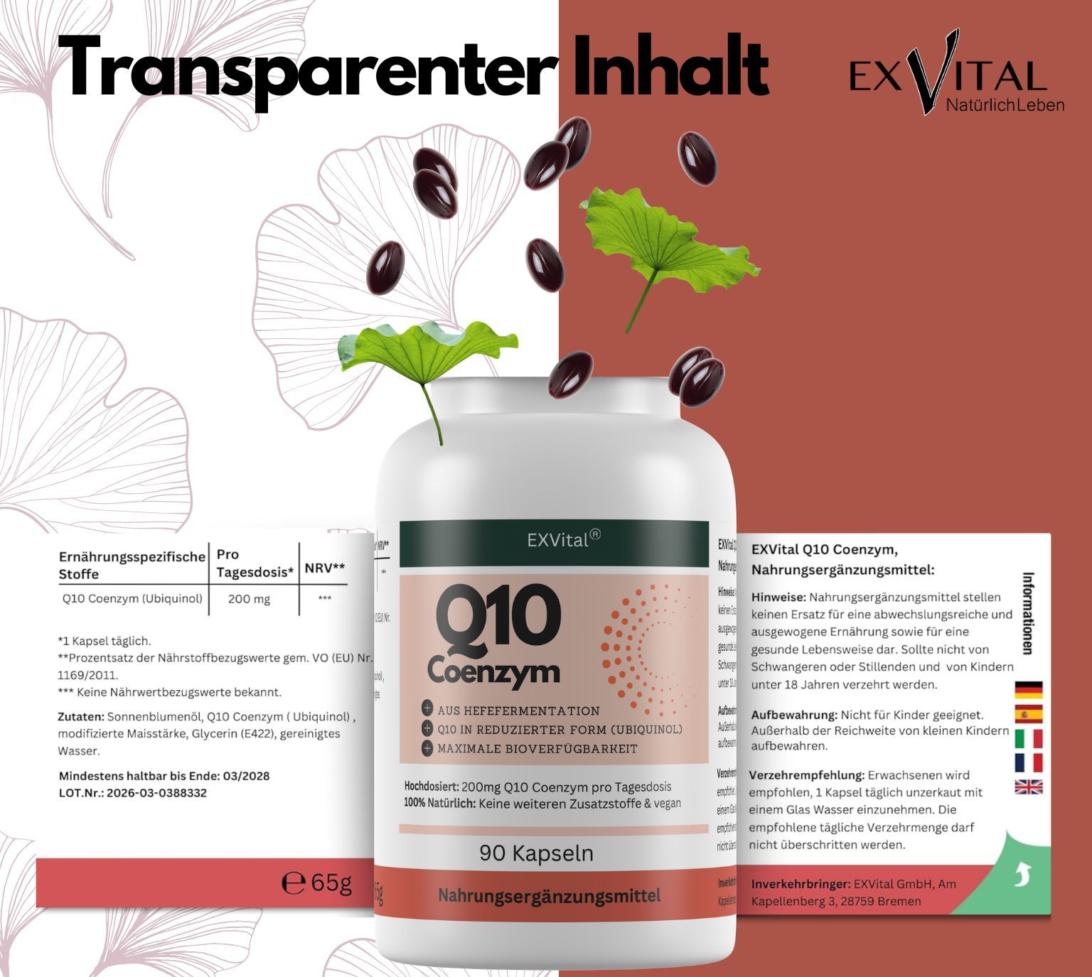 EXVital® Q10 Coenzym Ubiquinol Kapseln, hochdosiert mit 200mg, 90 Stück