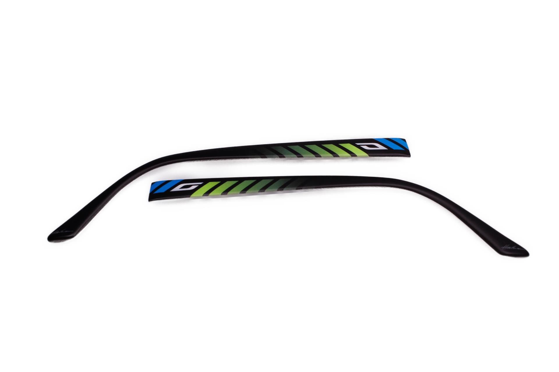 Wechselbügel von Eye Max Modell: 5418.03 Material: Grilamid TR 90 Farbe: Rallystreifen schwarz/ blau/ grün Länge 135mm