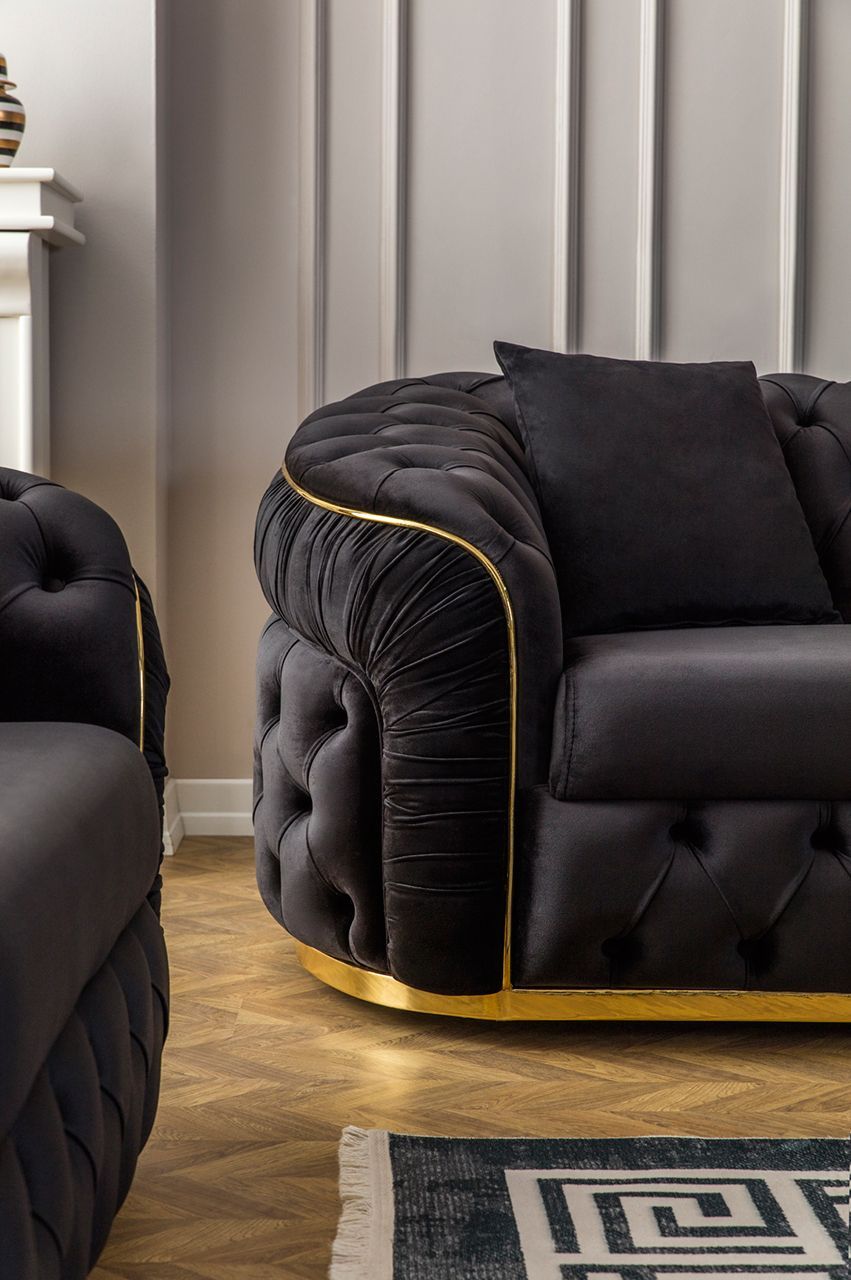 Eymense Sofa Set Elite 3-teilig Chesterfield Gold