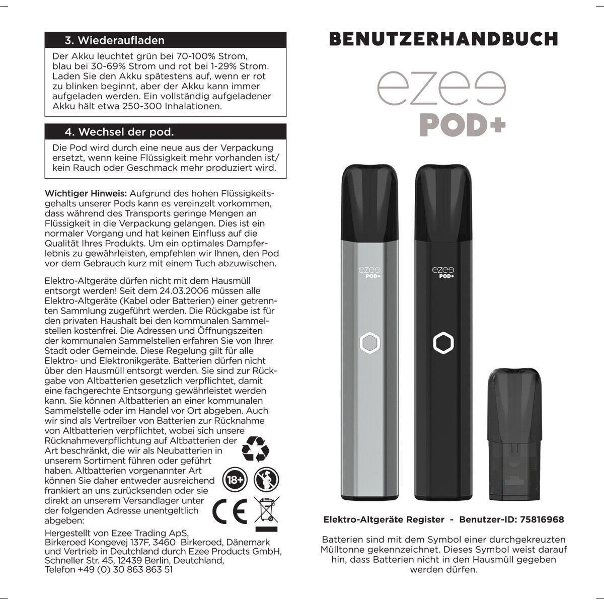 Ezee POD+ - Schwarz Starter Kit Tabak - 12 oder 20 mg Nikotin