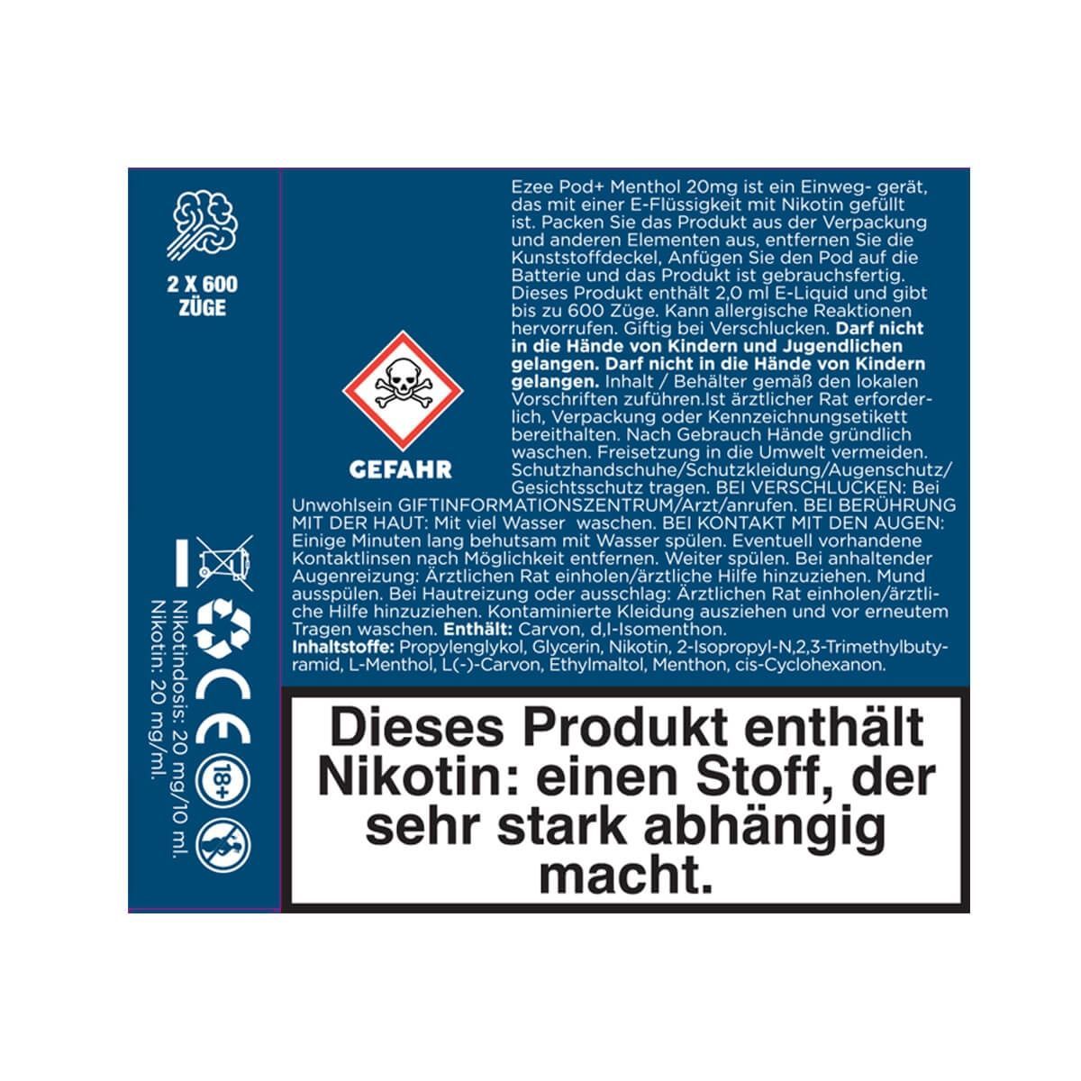 Ezee POD+ System -Vorgefüllte Pods - Tabak oder Mentholgeschmack