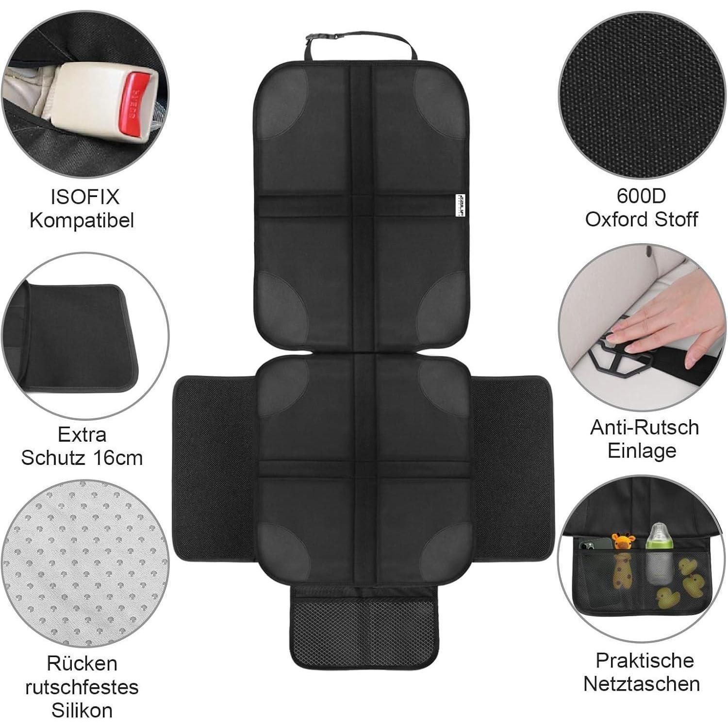 Ezilif Kindersitzunterlagen Set, ISOFIX geeignet, Schwarz, Anti-Rutsch, Auto