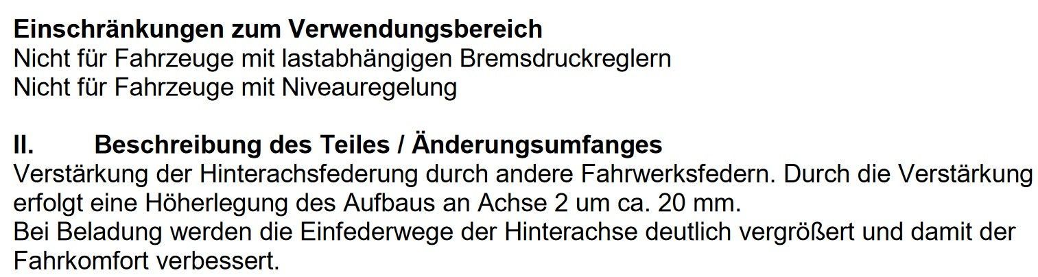 MAD Verstärkungsfedern - Höherlegungsfedern für die HA Passend für: Citroen Jumpy I Typ U6U/B ab 10/1995 - Bitte beachten Sie: Durch den Austausch der Federn erfolgt eine Höherlegung des Aufbaus an Achse-2 (HA) um ca. 20mm - Ausführung Heavy Duty, für Fahrzeuge mit einer dauerhaften Mindestbeladung von mindestens 400 kg - nicht für Fahrzeuge mit Niveauregulierung und lastabhängigen Bremsdruckregler Lieferumfang: 2 x MAD Verstärkungsfedern Teilenummer: HV-138518